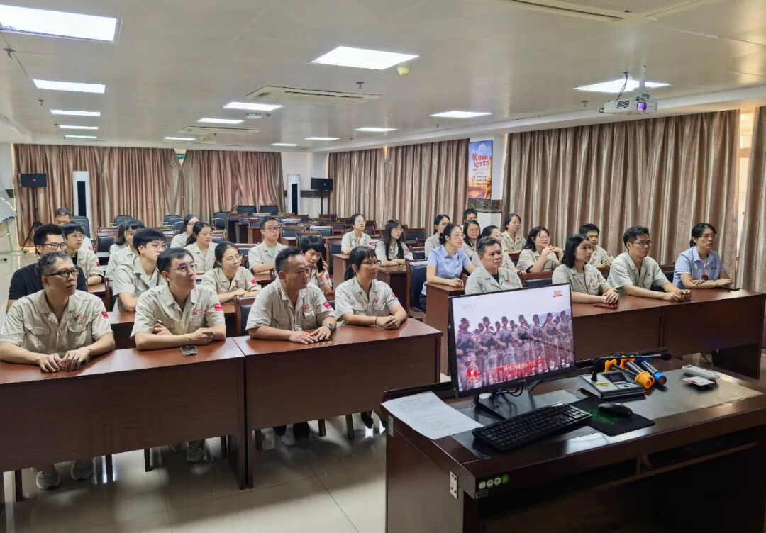 當(dāng)國歌奏響、五星紅旗冉冉升起時,觀看員工的目光緊隨大屏幕中受閱方陣的鏗鏘步伐。從陸??杖娐?lián)合方陣的整齊劃一,到新型導(dǎo)彈、無人機(jī)、智能作戰(zhàn)平臺的震撼亮相,每一幀畫面都引發(fā)現(xiàn)場熱烈掌聲。
